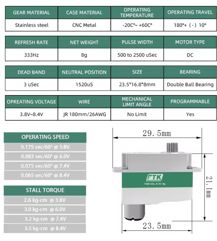 | PTK-7308-MG-D Servo Specifications | ||